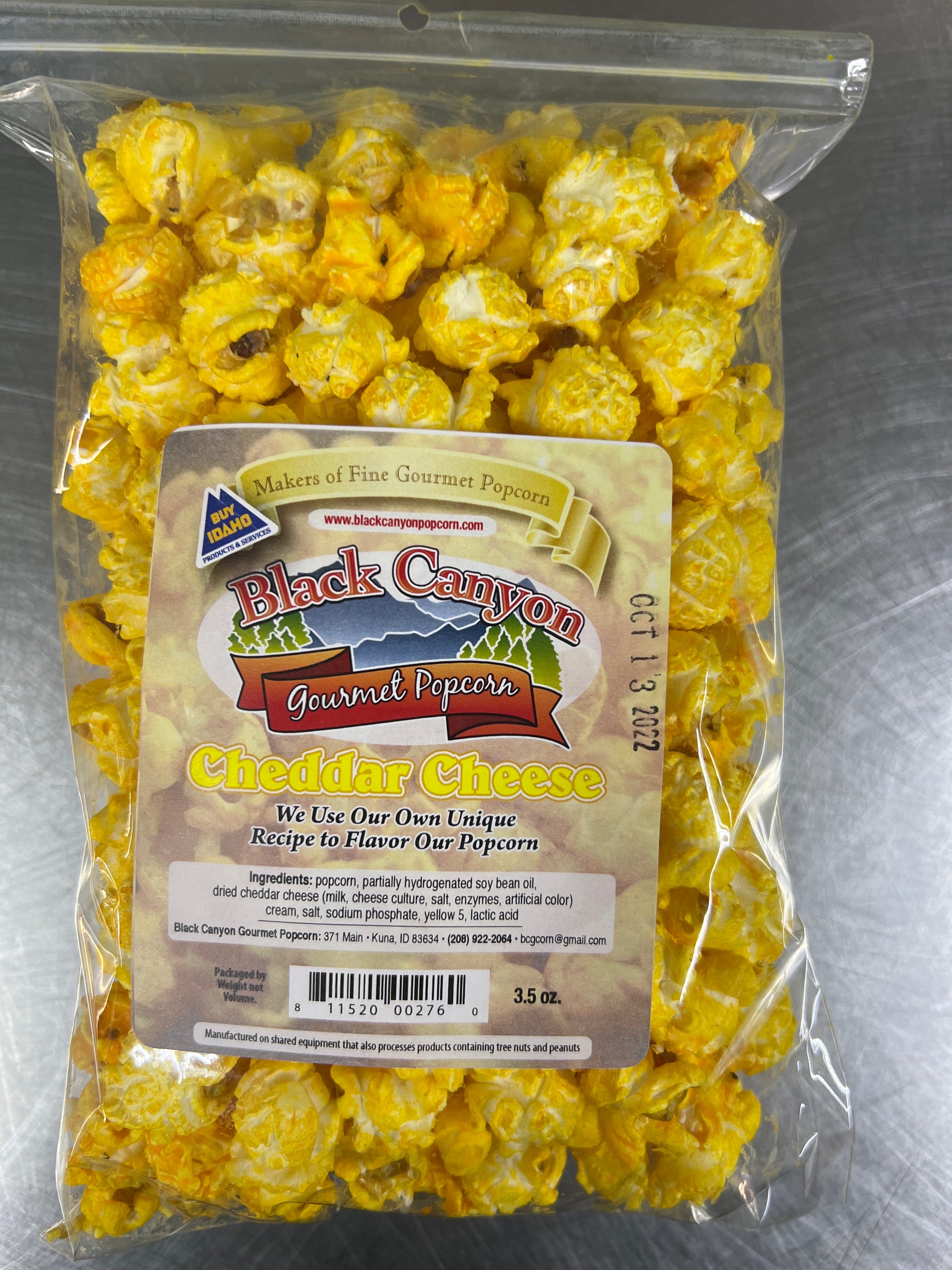 Ingredients: popcorn, partially hydrogenated soy bean oil, dried cheddar cheese,( milk, cheese culture, salt, enzymes, artificial colors) cream, salt, sodium phosphate, yellow 5, lactic acid.